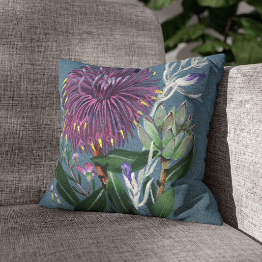 Australian Cone Flower with Emu Bush Flora Print Faux Suede Square Pillow Case